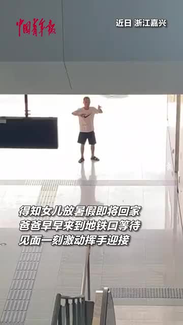 暖心!得知女儿放暑假即将回家,爸爸早早来到地铁口挥手迎接。